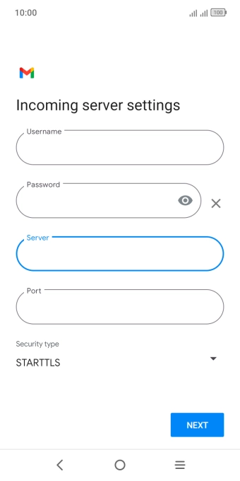 Press the field below "Server" and key in the name of your email provider's incoming server.