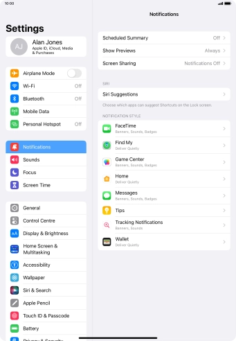 Press the indicator next to "Time-Sensitive Notifications" to turn the function on or off.