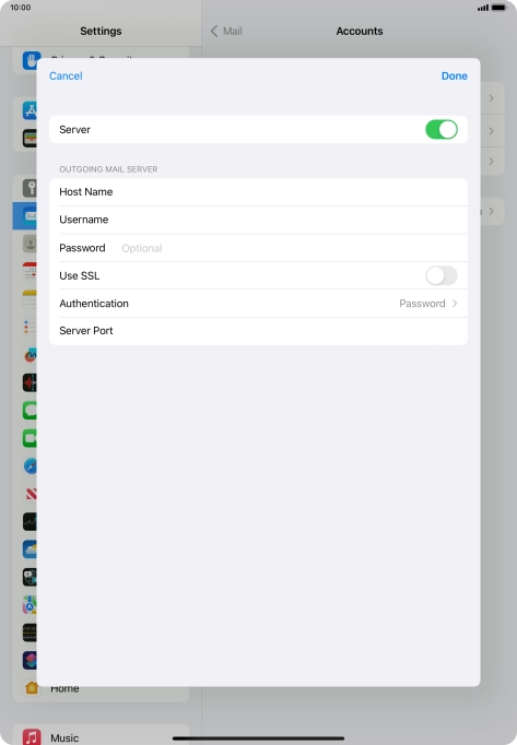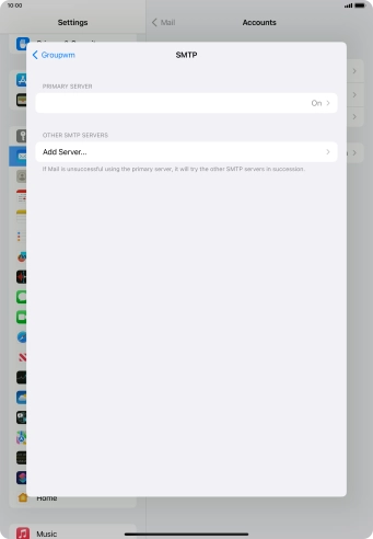 Press the required email account and follow the instructions on the screen to select settings for the specific account.