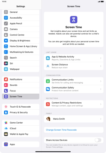 Communication Safety detects sensitive content in pictures and videos sent from and received on the selected Apple devices and offers guidance and warnings about this. This feature can be used when setting up Screen Time for your family group.
