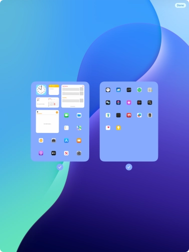 Press the field below the required home screen page to turn page view on or off.