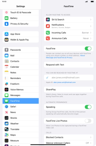 Press the required setting below "YOU CAN BE REACHED BY FACETIME AT".