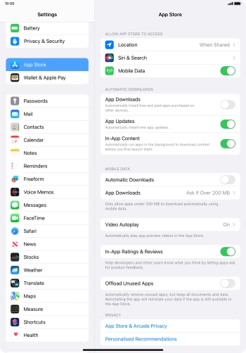 Press the indicator next to "Automatic Downloads" to turn the function on or off.