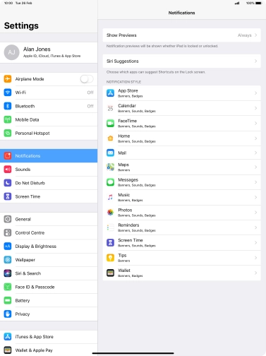 You can set your tablet to display notifications about new messages and appointments in the status bar at the top of the screen.