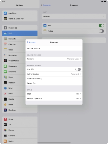 Press the required email account and follow the instructions on the screen to select settings for the specific account.