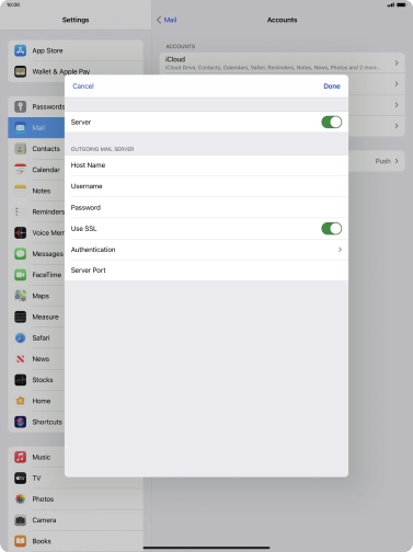 Press Password and key in the password for your email account.