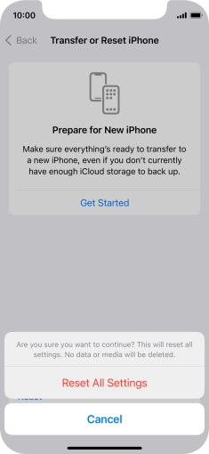 Press Reset All Settings. Wait a moment while the factory default settings are restored. Follow the instructions on the screen to set up your phone and prepare it for use.