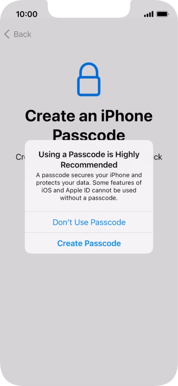 Follow the instructions on the screen to turn on use of phone lock code or press Don't Use Passcode.