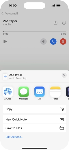 Press the required setting and follow the instructions on the screen to share or save the message.