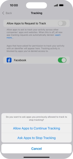 Press the indicator next to "Allow Apps to Request to Track" to turn the function on or off.
