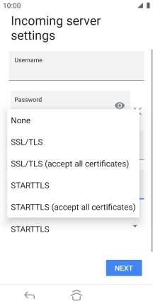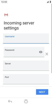 Press the field below "Server" and key in the name of your email provider's incoming server.