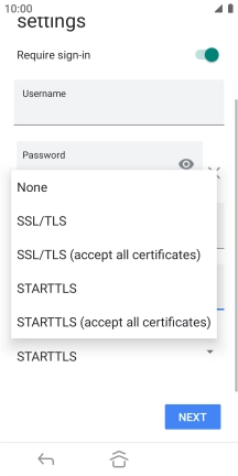 Press the field below "SMTP server" and key in the name of your email provider's outgoing server.