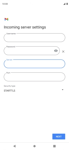 Press the field below "Server" and key in the name of your email provider's incoming server.
