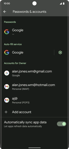 If this screen is displayed, you email account has been recognised and set up automatically. Follow the instructions on the screen to key in more information and finish setting up your phone.