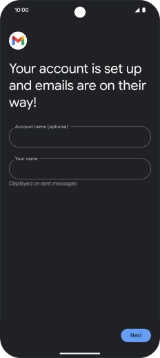 If this screen is displayed, you email account has been recognised and set up automatically. Follow the instructions on the screen to key in more information and finish setting up your phone.