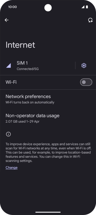 Press the indicator next to "Wi-Fi" to turn on the function.