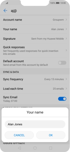 If this screen is displayed, you email account has been recognised and set up automatically. Follow the instructions on the screen to key in more information and finish setting up your phone.