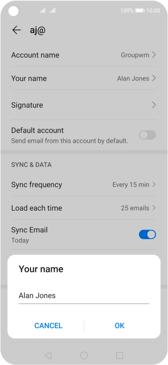 If this screen is displayed, you email account has been recognised and set up automatically. Follow the instructions on the screen to key in more information and finish setting up your phone.