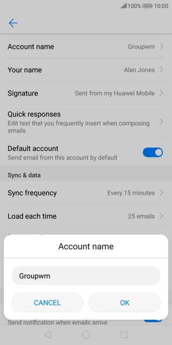 Press Your name and key in the required sender name.