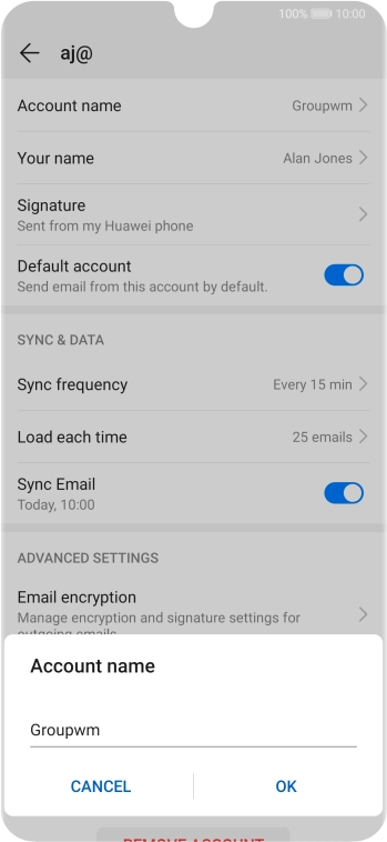 Press Password and key in the password for your email account.