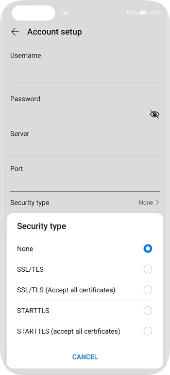 Press the field below "Server" and key in the name of your email provider's incoming server.