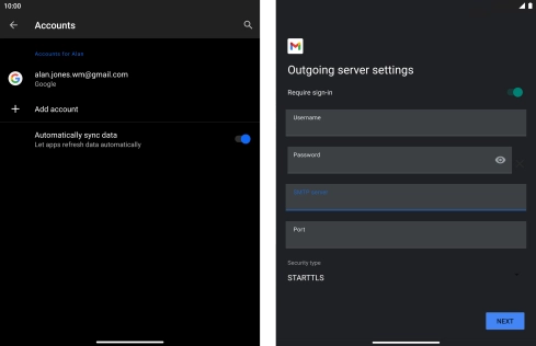 Press the field below "Password" and key in the password for your email account.