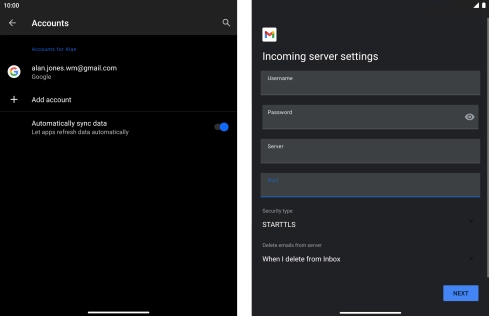 Press the field below "Server" and key in the name of your email provider's incoming server.