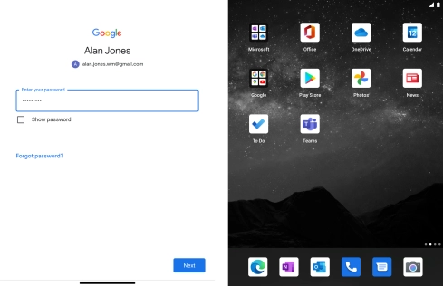 If you don't have a Google account, press Create account and follow the instructions on the screen to create an account.