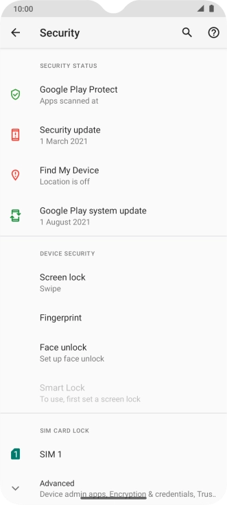 Press the indicator next to "Lock SIM card" to turn the function on or off.