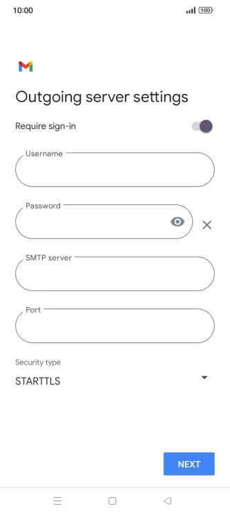 Press the field below "SMTP server" and key in the name of your email provider's outgoing server.