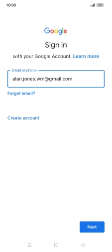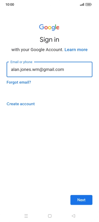 If you don't have a Google account, press Create account and follow the instructions on the screen to create an account.