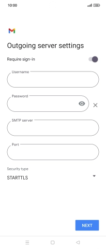Press the field below "SMTP server" and key in the name of your email provider's outgoing server.