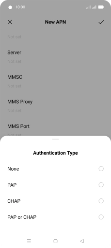 Press the field below "APN Type" and key in mms.