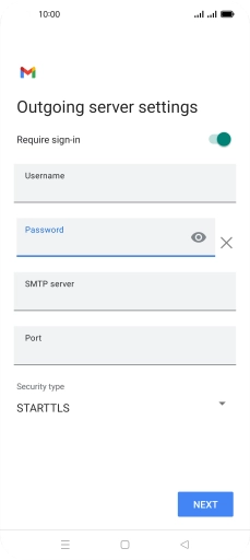 Press the field below "SMTP server" and key in the name of your email provider's outgoing server.