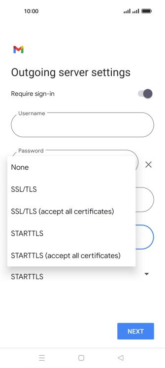 Press the field below "Username" and key in the username of your email provider's outgoing server.