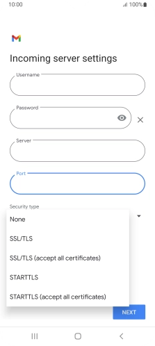Press the field below "Server" and key in the name of your email provider's incoming server.