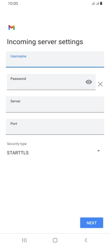 Press the field below "Server" and key in the name of your email provider's incoming server.