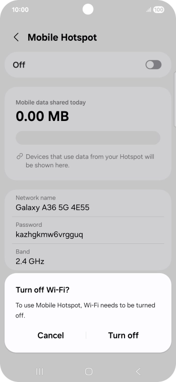 Key in the password for your Wi-Fi hotspot and establish the connection.