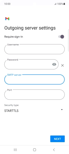 Press the field below "SMTP server" and key in the name of your email provider's outgoing server.