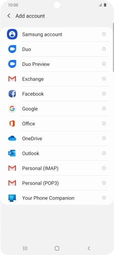 If this screen is displayed, you email account has been recognised and set up automatically. Follow the instructions on the screen to key in more information and finish setting up your phone.