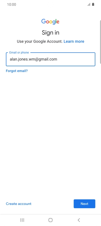 If you don't have a Google account, press Create account and follow the instructions on the screen to create an account.
