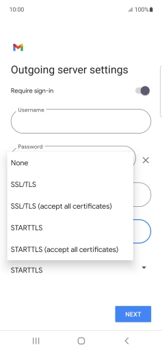 Press the field below "Password" and key in the password of your email provider's outgoing server.