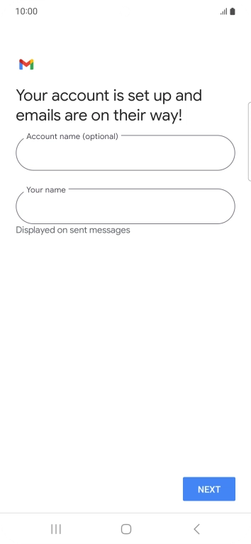 If this screen is displayed, you email account has been recognised and set up automatically. Follow the instructions on the screen to key in more information and finish setting up your phone.