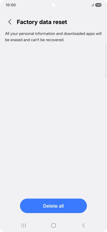 Press Delete all. Wait a moment while the factory default settings are restored. Follow the instructions on the screen to set up your phone and prepare it for use.