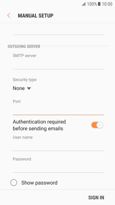 Press the field below "Password" and key in the password of your email provider's outgoing server.