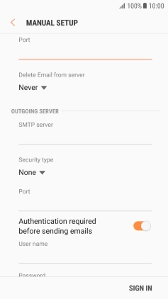 Press the field below "SMTP server" and key in the name of your email provider's outgoing server.