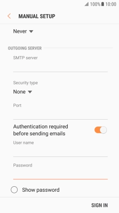 Press the field below "Password" and key in the password of your email provider's outgoing server.