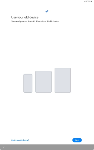 You can transfer the contents of another device to your tablet when it's activated for the first time and after a factory reset. When this screen is displayed, your tablet is ready to transfer contents from another device.