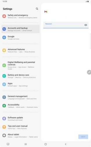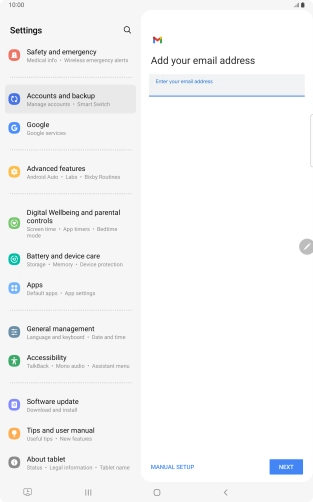 If this screen is displayed, you email account has been recognised and set up automatically. Follow the instructions on the screen to key in more information and finish setting up your tablet.