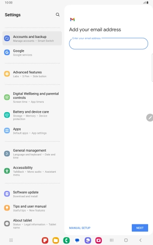 If this screen is displayed, you email account has been recognised and set up automatically. Follow the instructions on the screen to key in more information and finish setting up your tablet.